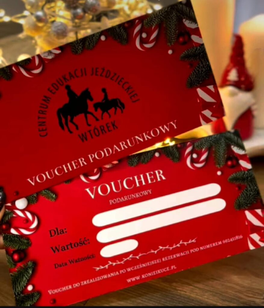 Świąteczny voucher na zajęcia jeździeckie to prezent, który zostaje w pamięci na długo — pełen emocji, radości i pięknych chwil spędzonych wśród koni.
